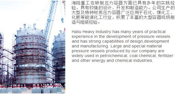 蘇州海陸重工股份有限公司位于江蘇省張家港市開發(fā)區(qū),是國內(nèi)一流的節(jié)能環(huán)保設備的專業(yè)設計制造企業(yè),目前并已初步形成鍋爐產(chǎn)品、大型壓力容器、核電設備、低溫產(chǎn)品、環(huán)保工程共同發(fā)展的業(yè)務格局。公司創(chuàng)建于1956年,注冊資本51640萬元,占地面積近50萬平米。公司下設八個控股子公司,一個余熱鍋爐研究所,在瑞士、北京、武漢、南京、上海、杭州、廣州等地設立分支機構,擁有雄厚的研發(fā)實力。公司秉承“科技領航、業(yè)界先鋒”的發(fā)展理念,注重研究廢熱、余熱利用和環(huán)境保護相結合的新技術研發(fā),自主設計能力居同行前列;公司承擔過國家863計劃,江蘇省科技成果轉化專項資金,榮獲國家科技進步二等獎,產(chǎn)品擁有核心自主知識產(chǎn)權并取得專利50多項;公司推行國際先進的管理體系標準和認證,擁有 A級鍋爐制造許可證,A1、A2、A3級壓力容器設計和制造許可證,取得了民用核承壓設備制造資格許可證、美國機械工程師學會(ASME)“S”、“U”鋼印,通過了ISO9001質量體系認證、健康體系認證和14000環(huán)境體系認證;公司設備先進,裝備精良,專業(yè)嚴謹?shù)闹圃炖砟畲蛟斐銎焚|非凡、質量一流的“海陸”品牌聲譽。